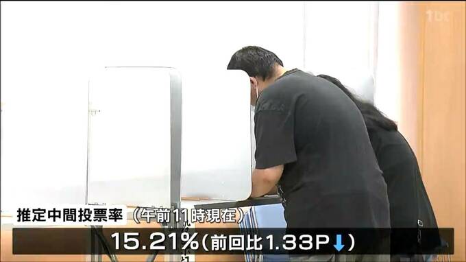 任期満了に伴う大和町長選挙は1日、投票が行われていて午前11時現在の推定中間投票率は15.21%と前回を1ポイントあまり下回っています。