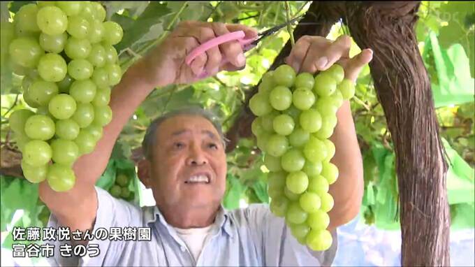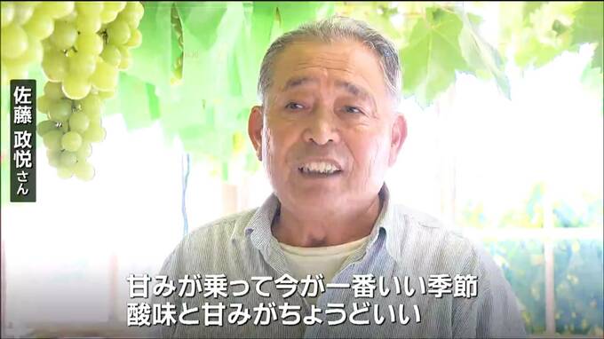 宮城県富谷市では、秋の味覚シャインマスカットの収穫が最盛期を迎えています。今年は夏場に雨が少なかったため、実の付き方が良く味も良いということです。