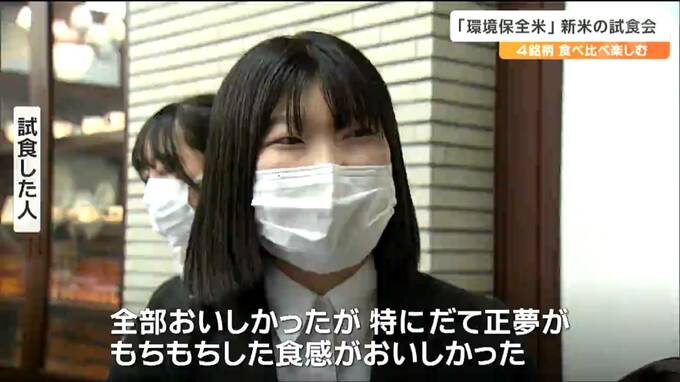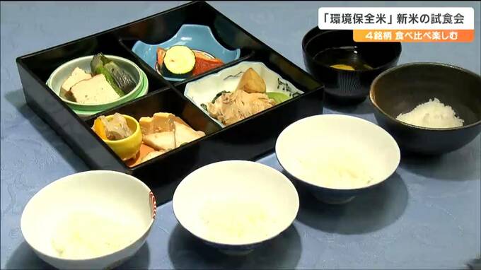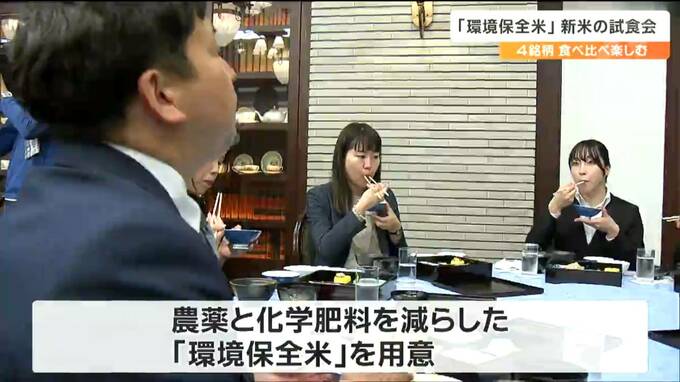 農薬と化学肥料を減らして栽培された「環境保全米」の新米の試食会が仙台で開かれ、参加者が4つの銘柄の味を楽しみました。