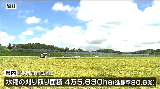 県によりますと、10月3日現在の県内の水稲の刈り取り面積は4万5630ヘクタールで進捗率は80.6%となっています。