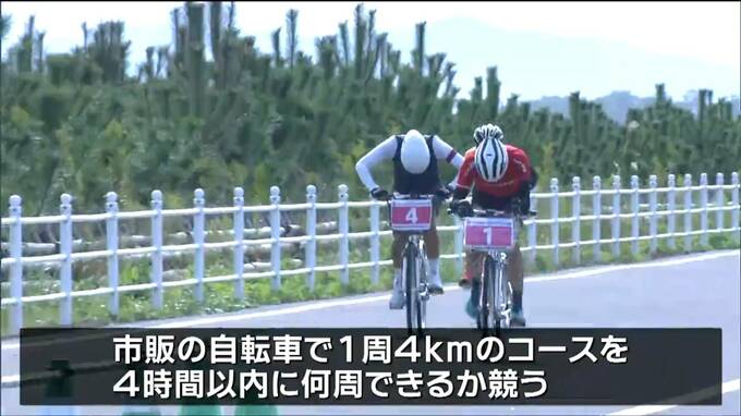 販の自転車で1周4キロのコースを4時間以内に何周できるか競います。