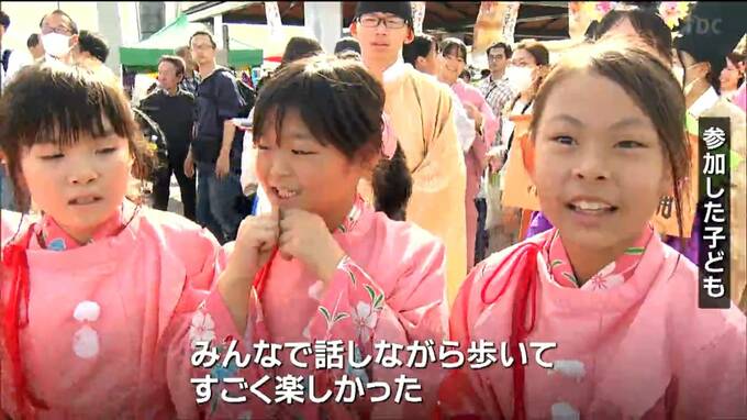 多賀城市で「万葉まつり」が開かれ華やかな衣装をまとった万葉衣装行列が4年ぶりに行われました。