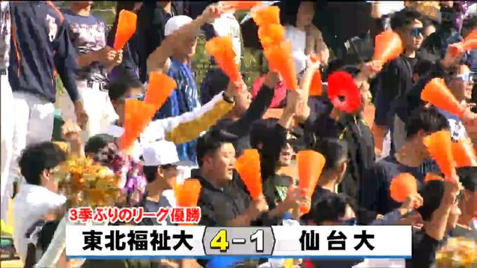 リードを広げた東北福祉大がライバル仙台大に2連勝で、去年の春以来、3シーズンぶりのリーグ優勝を果たしました。