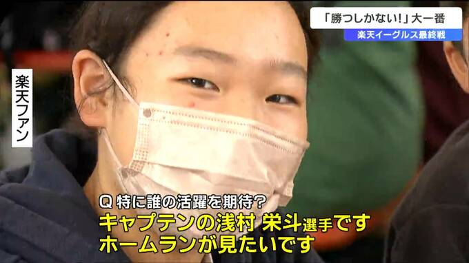 「(Q 特に誰の活躍を期待?)キャプテンの浅村栄斗選手です。ホームランが見たいです」