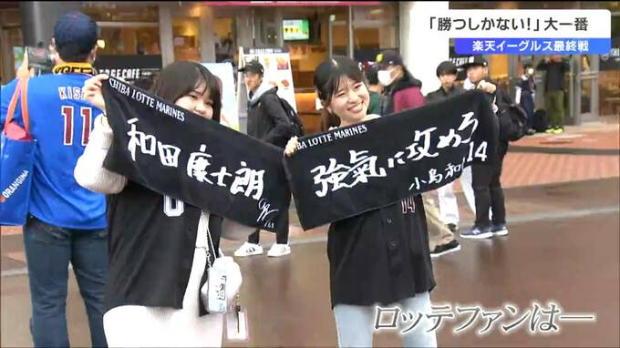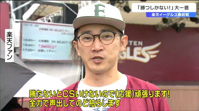 クライマックスシリーズ進出をかけロッテとの最終戦に臨む楽天イーグルス。勝利を信じるファンの応援にもより一層熱が入っています。