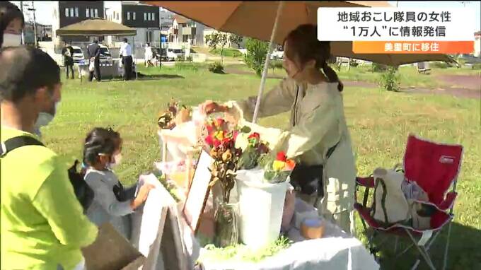 10月8日、美里町で開かれた秋のまつり武田さんは、バラ染めの布のコースターやドライフラワーなどを販売しました。