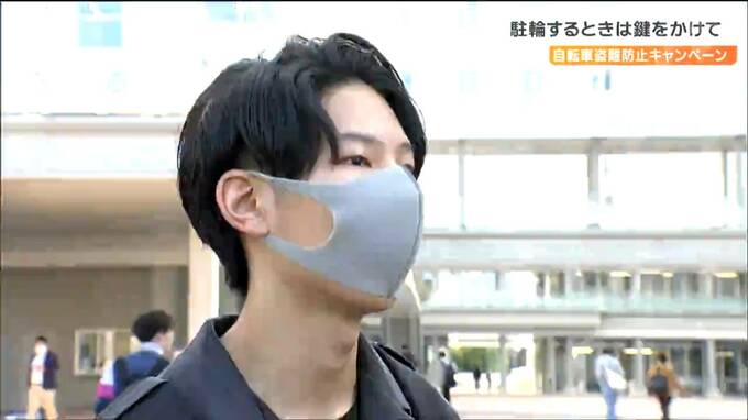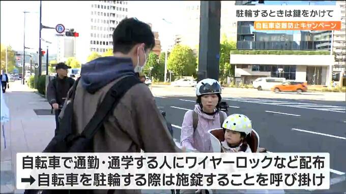 若林区の東北大学五橋キャンパス前で行われたキャンペーンは、防犯啓発活動を行う「東北学院大学防犯ボランティアING(いんぐ)」と若林警察署が行ったものです。25日は自転車で通勤・通学する人にワイヤーロックなどを配って、自転車を駐輪する際は盗難にあわないために鍵をかけるよう呼びかけました。