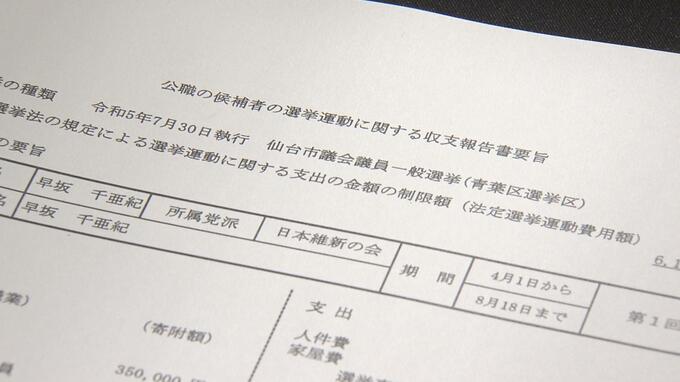 今年7月に行われた仙台市議会議員選挙で初当選した日本維新の会の早坂千亜紀市議が、定められた期日を過ぎてから選挙運動の収支報告書を提出し、公職選挙法に違反した状態になっていることがわかりました。