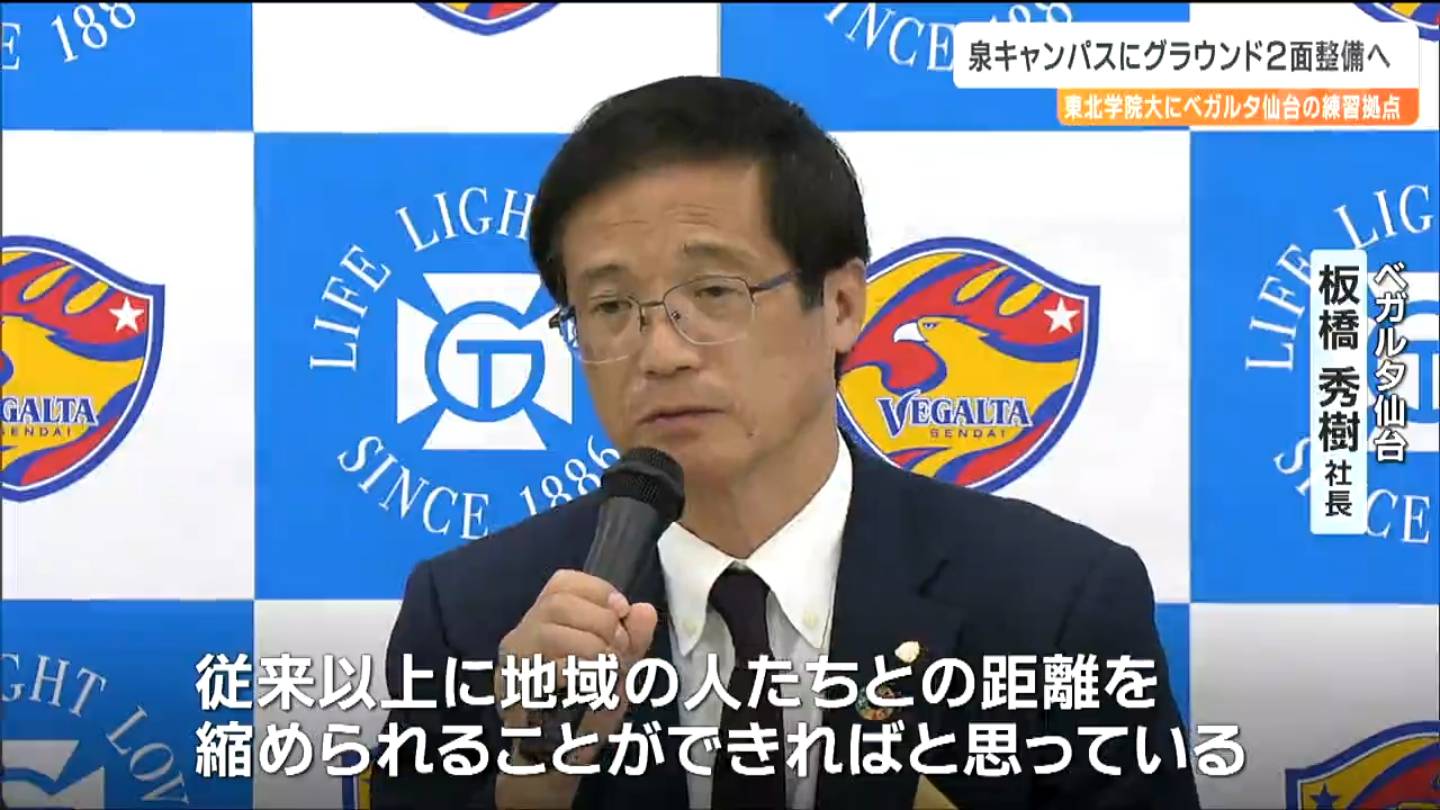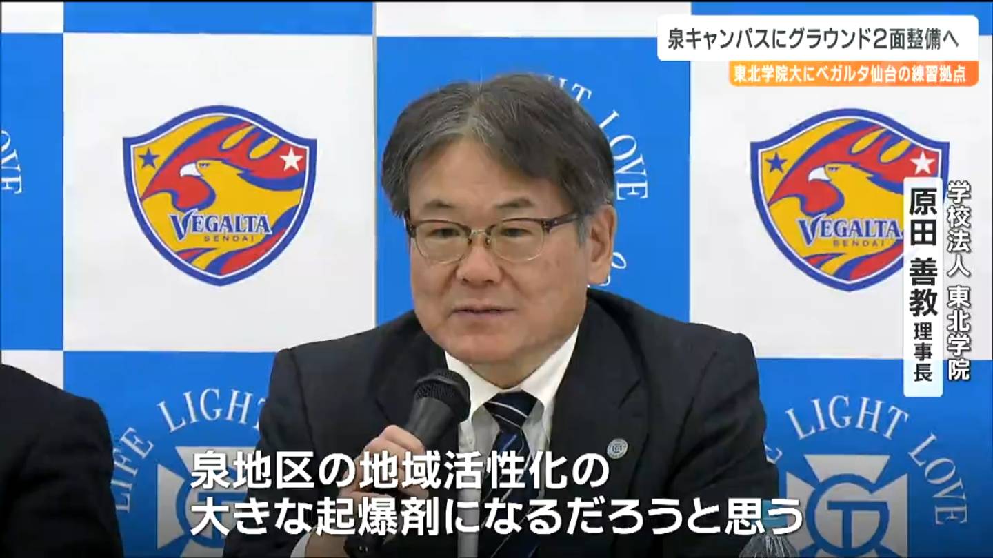 東北学院の原田善教理事長とベガルタ仙台の板橋秀樹社長らは7日、東北学院大学の泉キャンパスに整備するベガルタの新たな練習拠点の概要を明らかにしました。