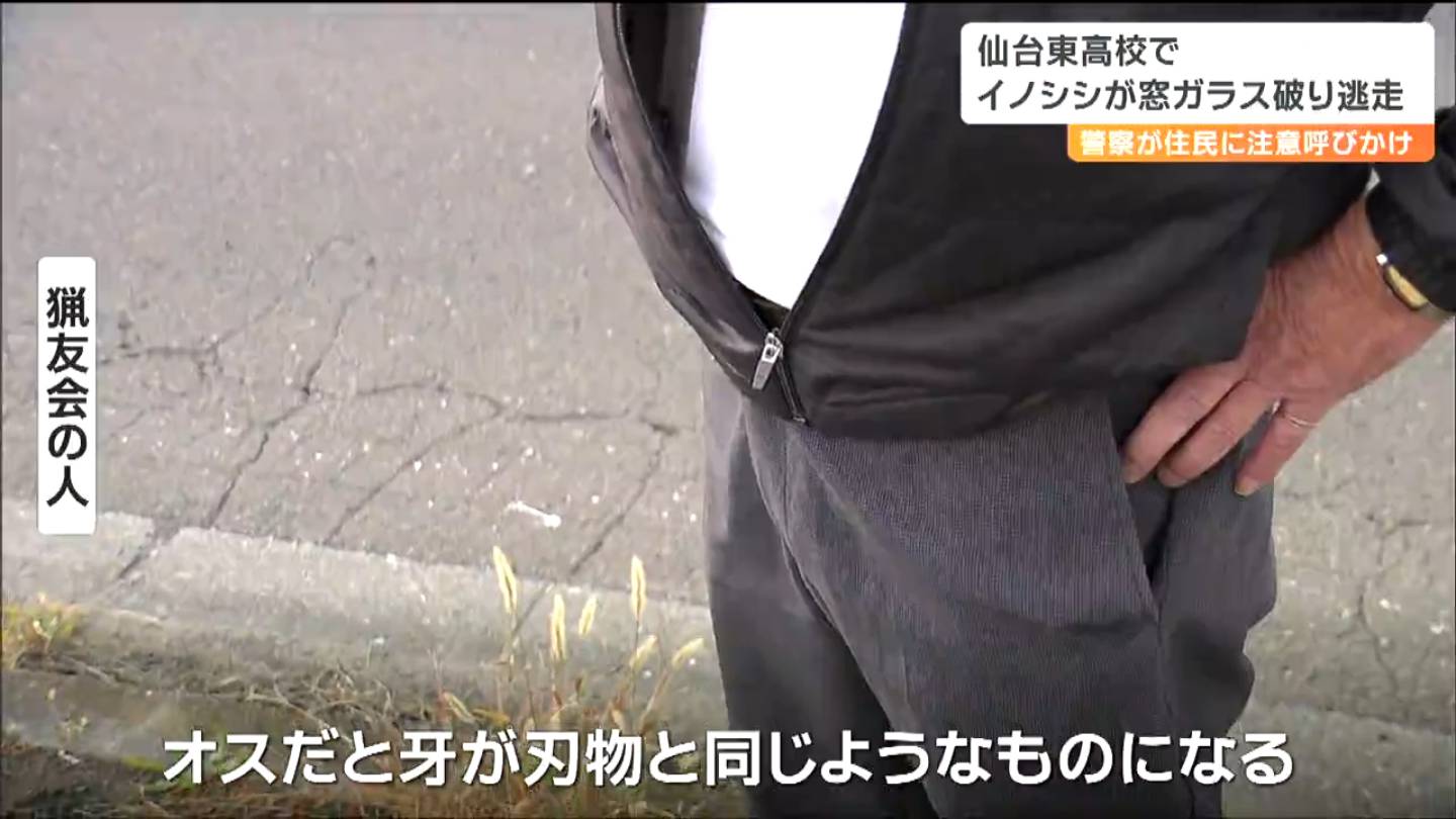 23日朝、仙台市の仙台東高校の敷地内にイノシシが侵入し、校舎の窓ガラスを突き破るなど暴れて、逃げています。周辺では、イノシシが人や車にぶつかるなどおよそ20件の通報があり警察が、住民に注意を呼びかけています。