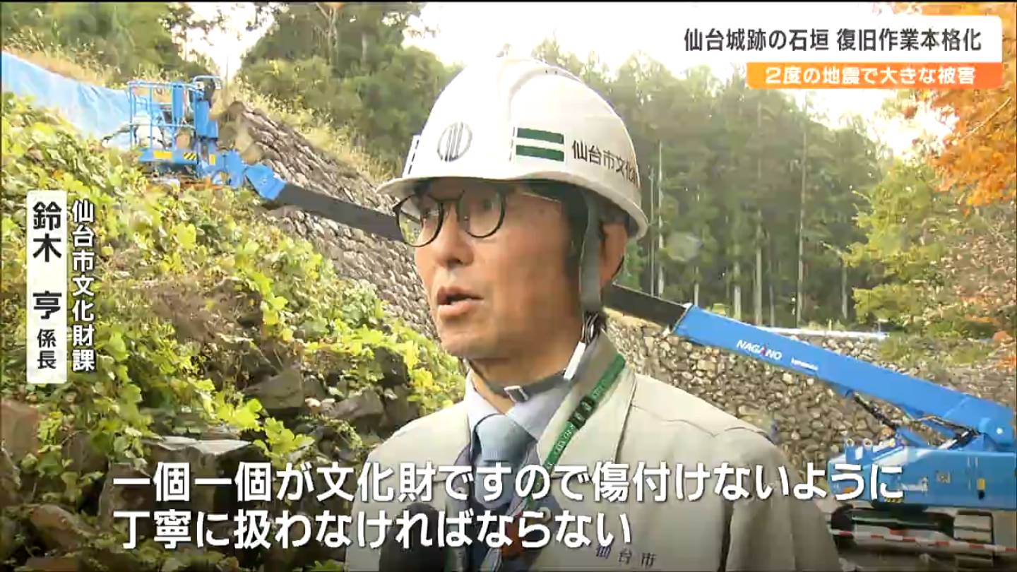 2021年と22年の地震で大きな被害を受けた仙台城跡の石垣の復旧作業が本格的に始まりました。