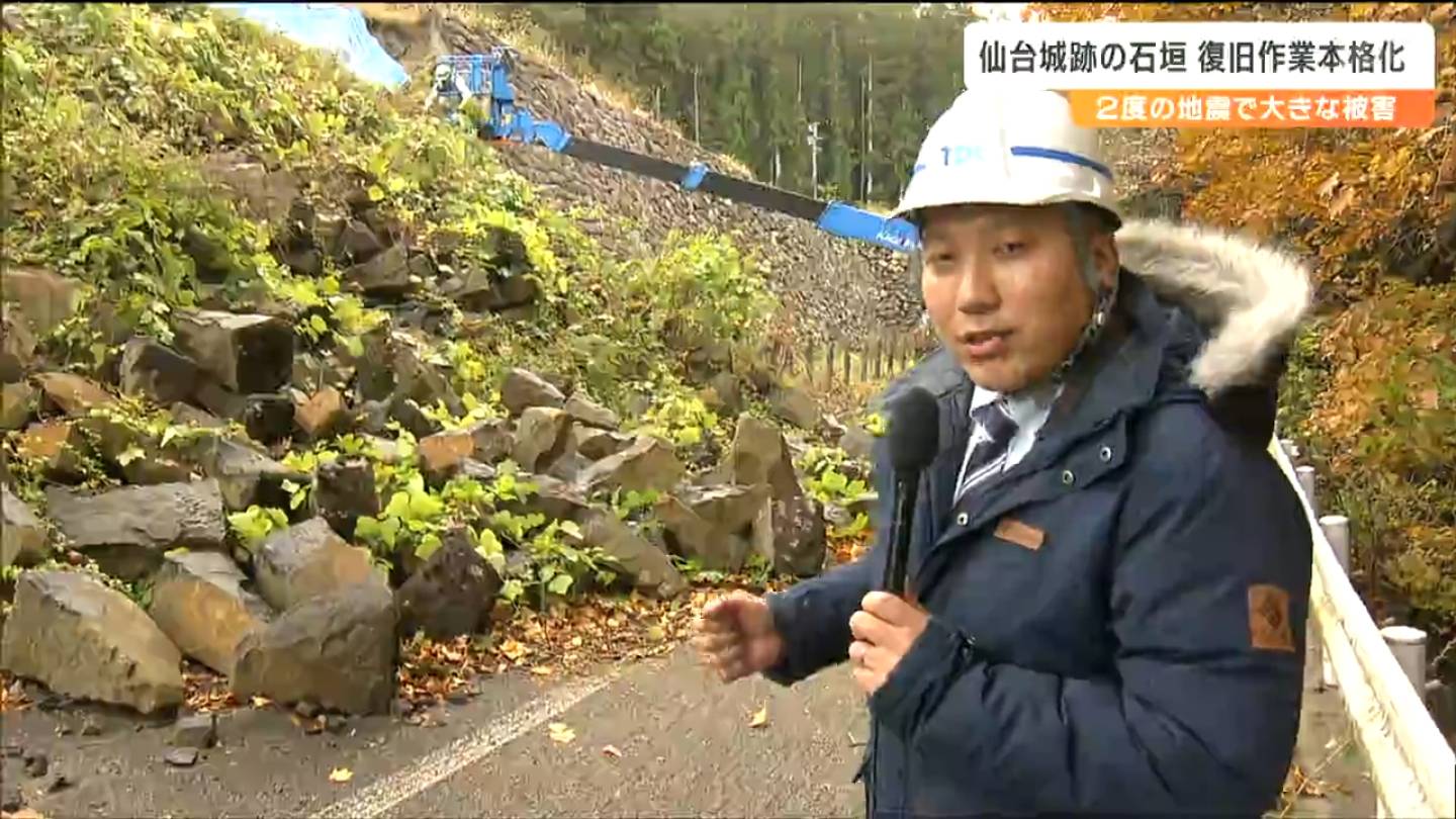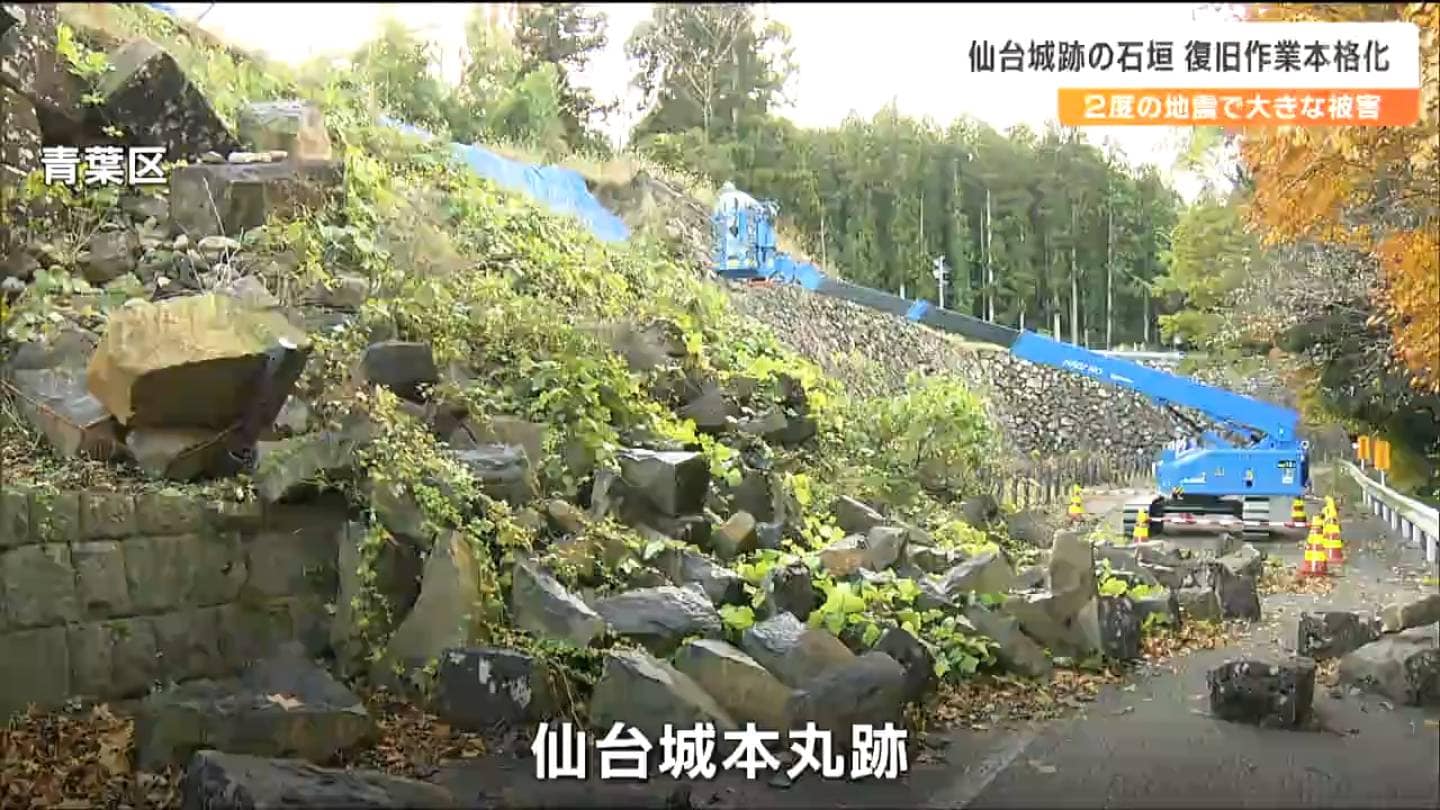 仙台城跡は2021年2月と22年3月の地震で石垣が崩れたり変形したりする被害が出ました。これまで仙台市教委による現地調査などが行われ11月から石の運び出しに向けた作業が始まりました。