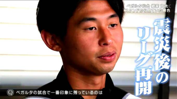 「一番は震災のときのJリーグを再開した一戦目のアウェー川崎戦です。それは僕だけじゃなくて宮城県民の方も、サッカー好きなら見てると思います。僕はテレビで見ていました。リアルタイムで最後の鎌田選手のヘディングシュートまで全部見ました。やっぱりサッカー小僧としても、いち被災者としても、すごく勇気をもらったし、アカデミー生だったので“ここを目指すんだ”というのを、その当時かなり強く思った。