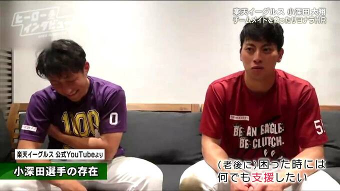 「誰が何を言おうと、小深田選手は僕の人生を変えてくれた方なので、小深田さんが、老後もし困ったときには、もう本当に何でも支援したい。それも含めて、いっぱい活躍して稼いで小深田さんの分まで支援できるように、という思いだけで今やってます」