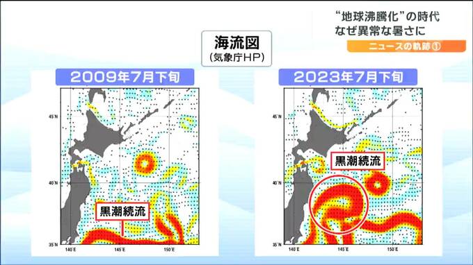 「海面水温が2度、3度とそのぐらい高い状況が続きますと、大気の方はそれにすぐ影響されて、温度が上がるそういう状況になった。黒潮に続いて流れるという意味で『黒潮続流』って言い方するんですけれでも、それが今年は東の方に行かなくて北上した」