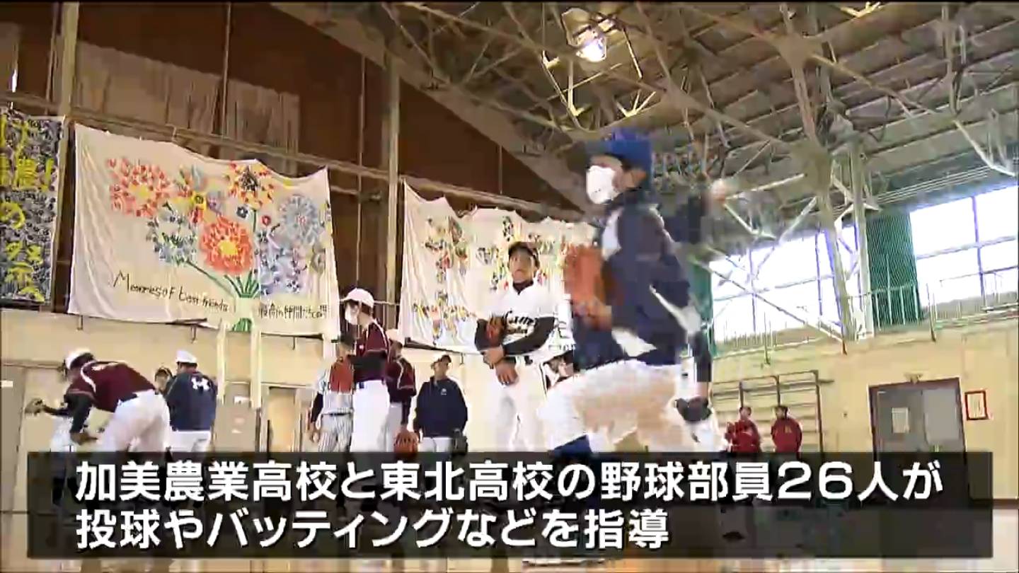 高校の野球部員が小中学生に投球やバッティングなどを指導する野球教室が宮城県色麻町で開かれました。