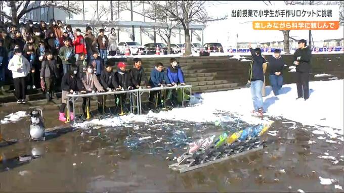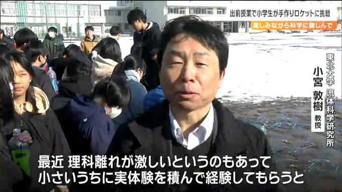 手作りのロケットが勢いよく飛んでいきました。子どもたちに楽しみながら科学に親しんでもらおうと、宮城県大和町の小学校で東北大学の教授による出前授業が行われました。