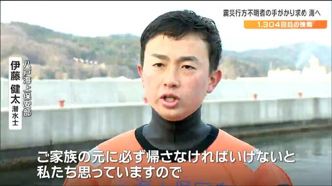 19日の捜索で手がかりは見つかりませんでした。宮城海上保安部を含め海上保安庁では、震災直後から被災3県で潜水捜索を続けていて、今回で1304回目になるということです。
