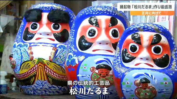 宮城の海と空を表した群青色で彩られただるま。県の伝統的工芸品「松川だるま」です。青葉区の本郷だるま屋では、正月に向けて10代目の本郷久孝さんと妻の尚子さんが丁寧に絵付けをする作業に追われてました。