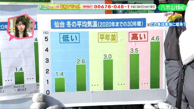 したがって、暖冬かどうかは冬の平均気温によって決まるので、短い期間に平年より低い気温が観測されたからといって、暖冬ではないということではありません。この冬が本当に暖冬だったかどうかは、冬が終わった3月に確定します。