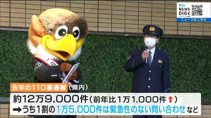 県警によりますと、去年1年間の県内の110番通報は、2022年より1万1000件多いおよそ12万9000件で、このうちおよそ1割にあたる1万5000件は、緊急性のない問い合わせなどです。