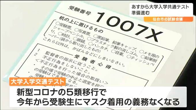 "コロナ5類移行後初の大学入学共通テスト"会場準備進む「コロナ以前の態勢にほぼ戻った。あす元気に会場に向かってもらえれば」仙台 2024年1月12日(金) 18:31 国内 13日と14日、全国一斉に「大学入学共通テスト」が行われます。これを前に仙台市内の試験会場で準備が行われました。このうち、去年4月に新設され初めて大学入学共通テストの試験会場となる東北学院大学五橋キャン…