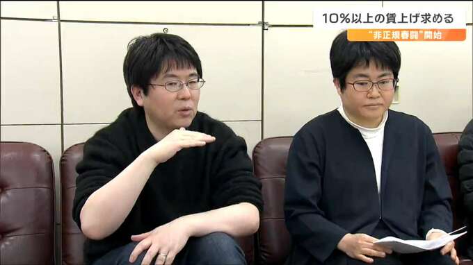 10%以上の賃上げ求める 宮城で「非正規春闘」開始 "賃金低いのに物価高騰” 2024年1月30日(火) 17:35 国内 パートやアルバイト、派遣社員などの非正規労働者による春闘が30日から宮城県内で始まりました。10%以上の賃上げを求めています。春闘を開始したのは、非正規労働者が個人で加盟できる労働組合でつくる「非正規春…