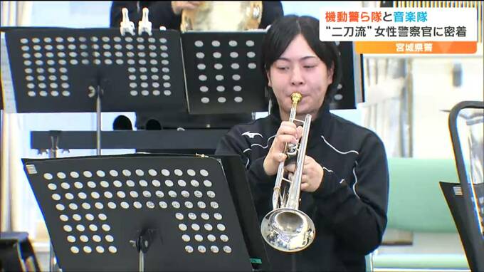 去年11月、名取市で開かれた警察学校の祭で披露された県警音楽隊によるマーチングバンド演奏。そこにはトランペットを吹く髙橋巡査の姿がありました。
