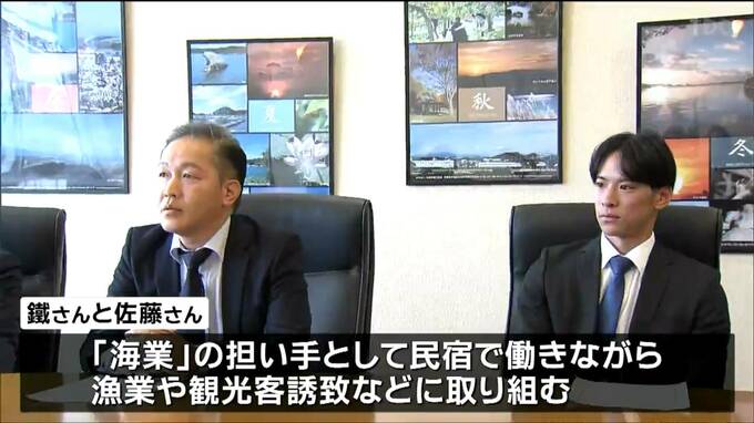 鐵さんと佐藤さんは、観光と漁業の連携で地域活性化を目指す「海業」の担い手として民宿で働きながら漁業や観光客誘致などに取り組みます。3人とも仙台市から住民票を移し移住します。