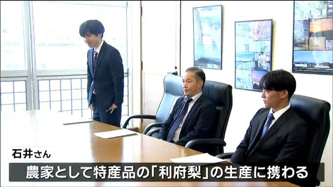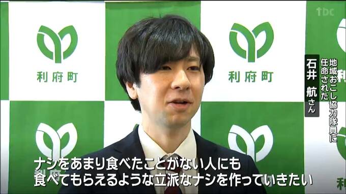 利府町の地域おこし協力隊員に任命されたのは、石井航さん(35)と鐵潤さん(52)、それに佐藤竜さん(24)の3人です。石井さんは、農家として特産品の「利府梨」の生産に携わります。