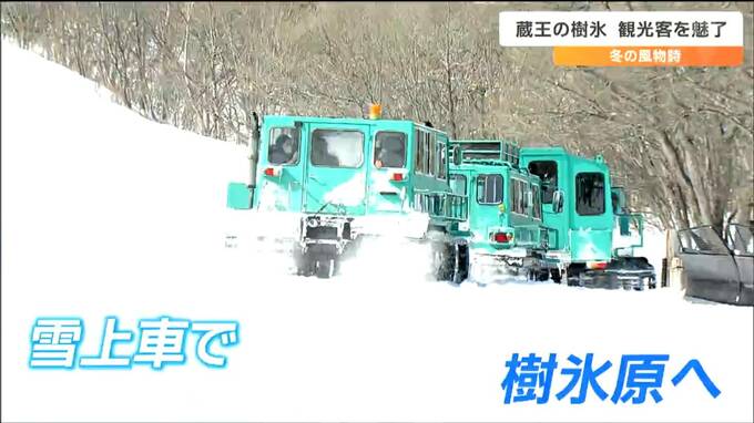 宮城県蔵王町のスキー場「マウンテンフィールド宮城蔵王すみかわ」では、恒例の「樹氷めぐりツアー」が始まっています。3連休最終日の12日も、多くの観光客が樹氷を目当てにを訪れました。雪上車に乗って、一面に樹氷が広がる「樹氷原」を目指します。