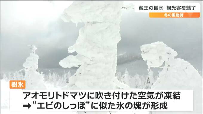 冬の風物詩、蔵王の樹氷が見頃です。3連休最終日の12日は、多くの観光客が訪れて、幻想的な風景に魅了されていました。