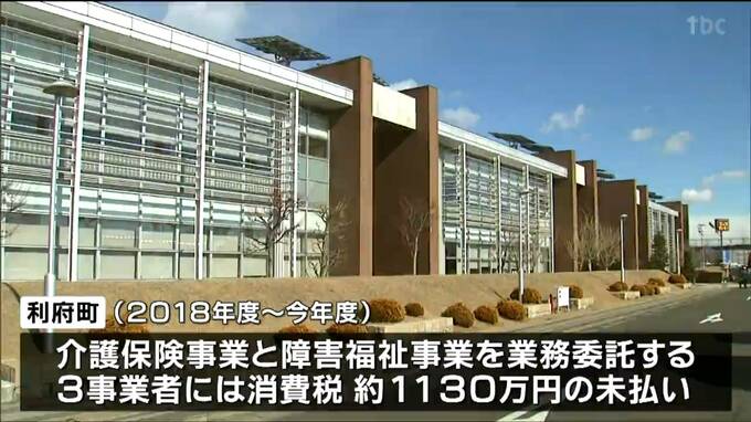 宮城県利府町が5つの事業者に業務委託している介護保険事業などの業務委託料の消費税について、2018年度から今年度までの間におよそ870万円の過払いとおよそ1100万円の未払いがあったことがわかりました。