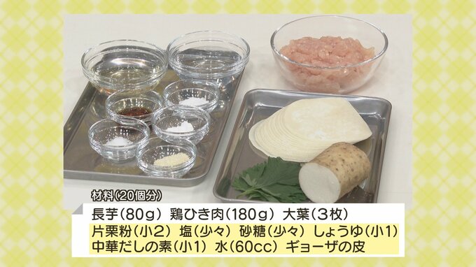 長芋は食べすぎやストレスで荒れた胃腸の粘膜を保護し、修復や消化を助ける効果に期待できる食材です。今回はそんな長芋を使った『長芋ギョーザ』を作ります。