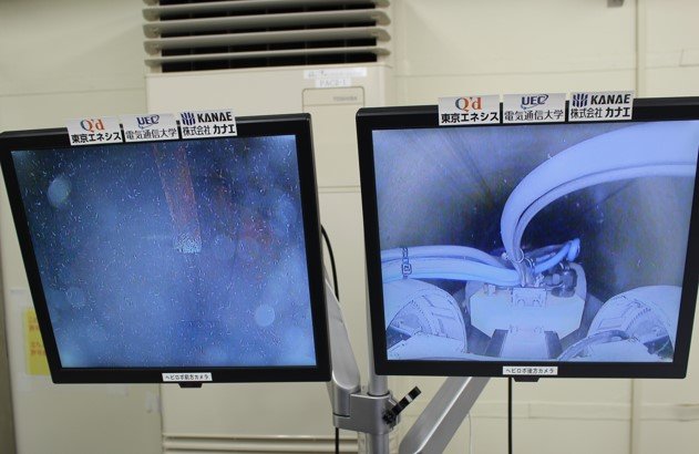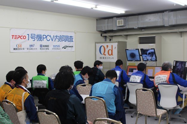 28日は、圧力容器を支える土台の外周を撮影し、内部にドローンを入れることができるかを確認しました。