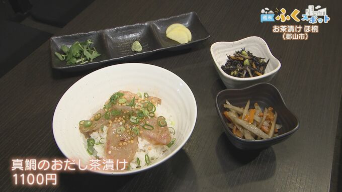 その中でもおすすめは『真鯛のおだし茶漬け(1100円)』。ひつまぶし風に、まずは特製のタレに漬け込まれた真鯛を味わい、そのあとおだしをたっぷりとかけます。