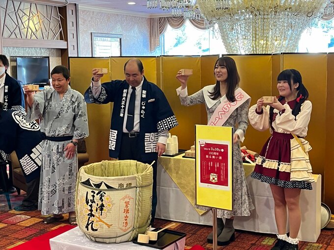 創業100周年を迎えた3月10日、聚楽が運営する福島市の「飯坂ホテルジュラク」では、記念のイベントが開かれ、会場では地酒が振舞われました。また、バルーンアイドル「マジカルバルルーンYes」によるショーが行われたほか、宿泊券や日帰り入浴券など、豪華景品が当たる抽選会も行われました。