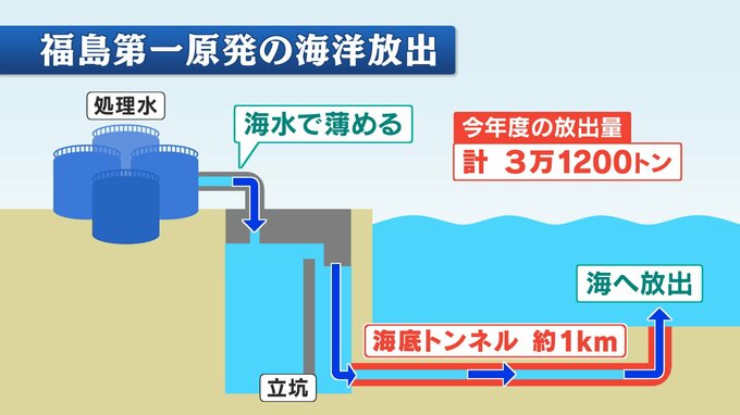 東京電力福島第一原発では現在、多核種除去設備=ALPSで浄化されないトリチウムを含んだ処理水を海水で薄めて、海底トンネルを通じて原発の沖合およそ1キロで放出しています。