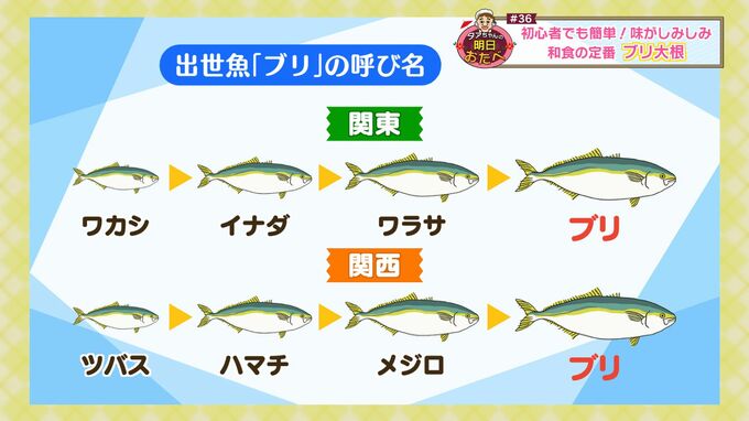 ブリは大きさによって呼び名が変わる「出世魚」として知られており、関西と関東で呼び名が違うんです。おもしろいですよね!今日はそんなブリを使った和食の定番『ブリ大根』を作ります。