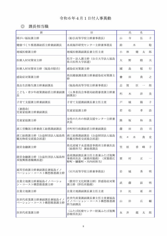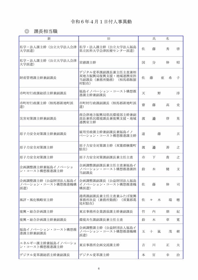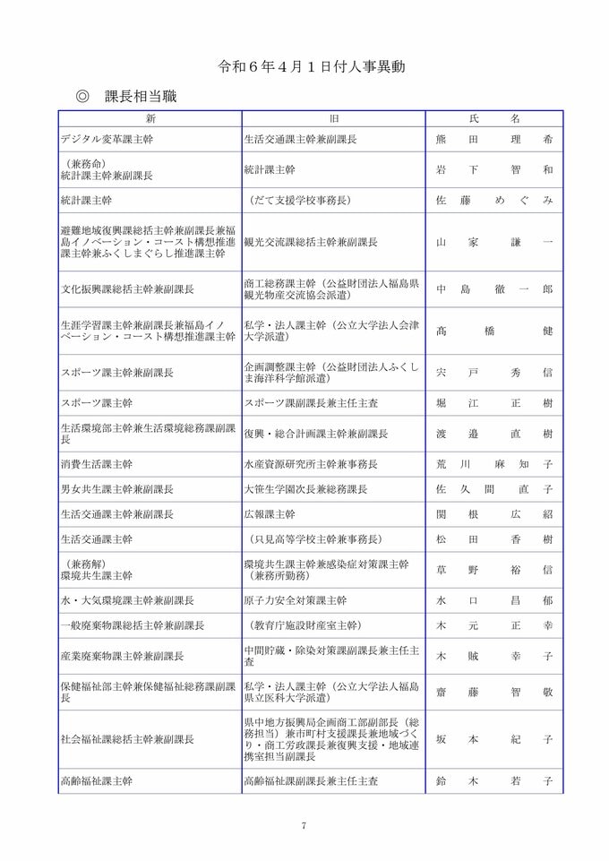 3. 福島県職員人事異動2024年(令和6年春)課長相当職以上の職員の異動・退職者【名簿全掲載】