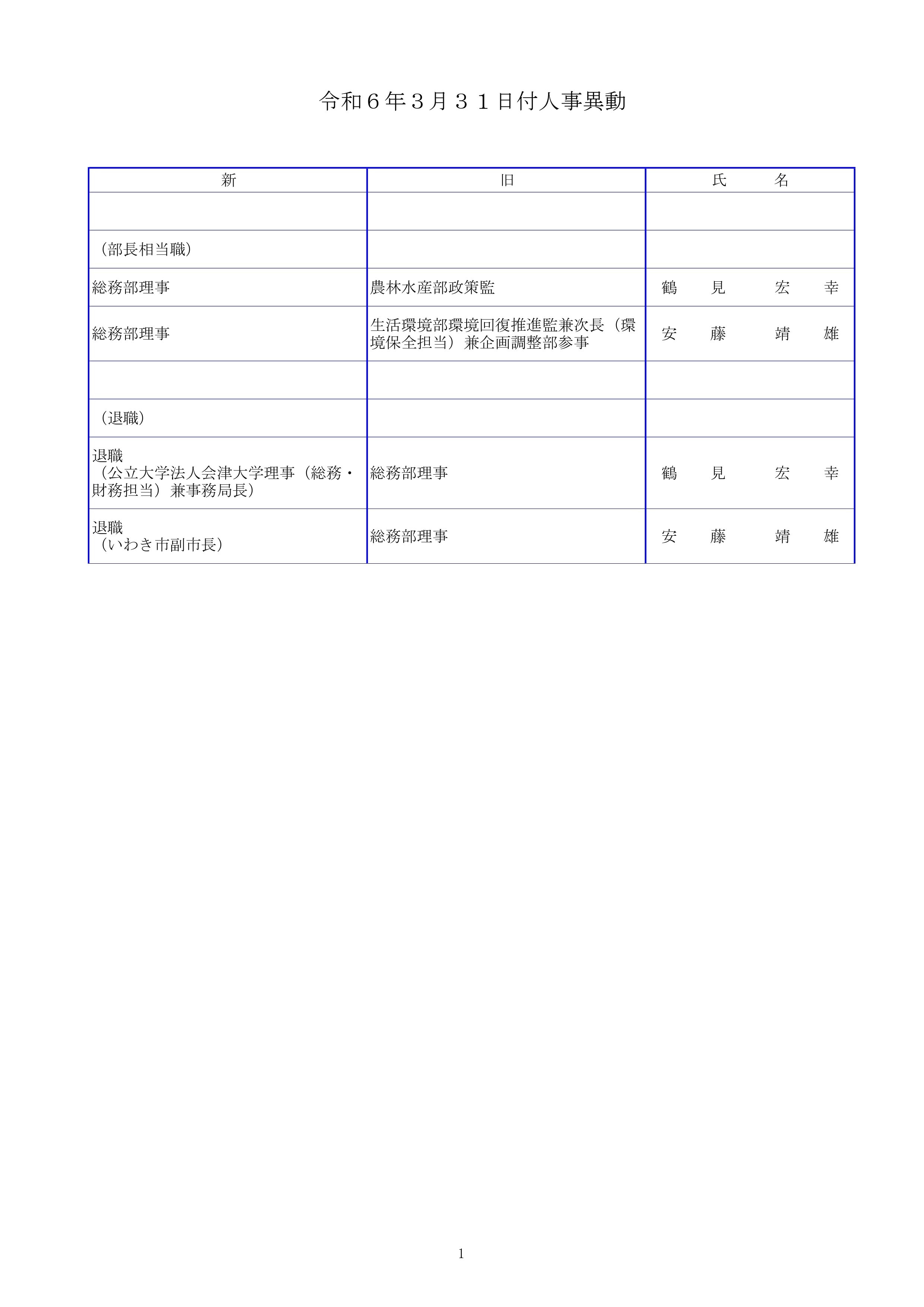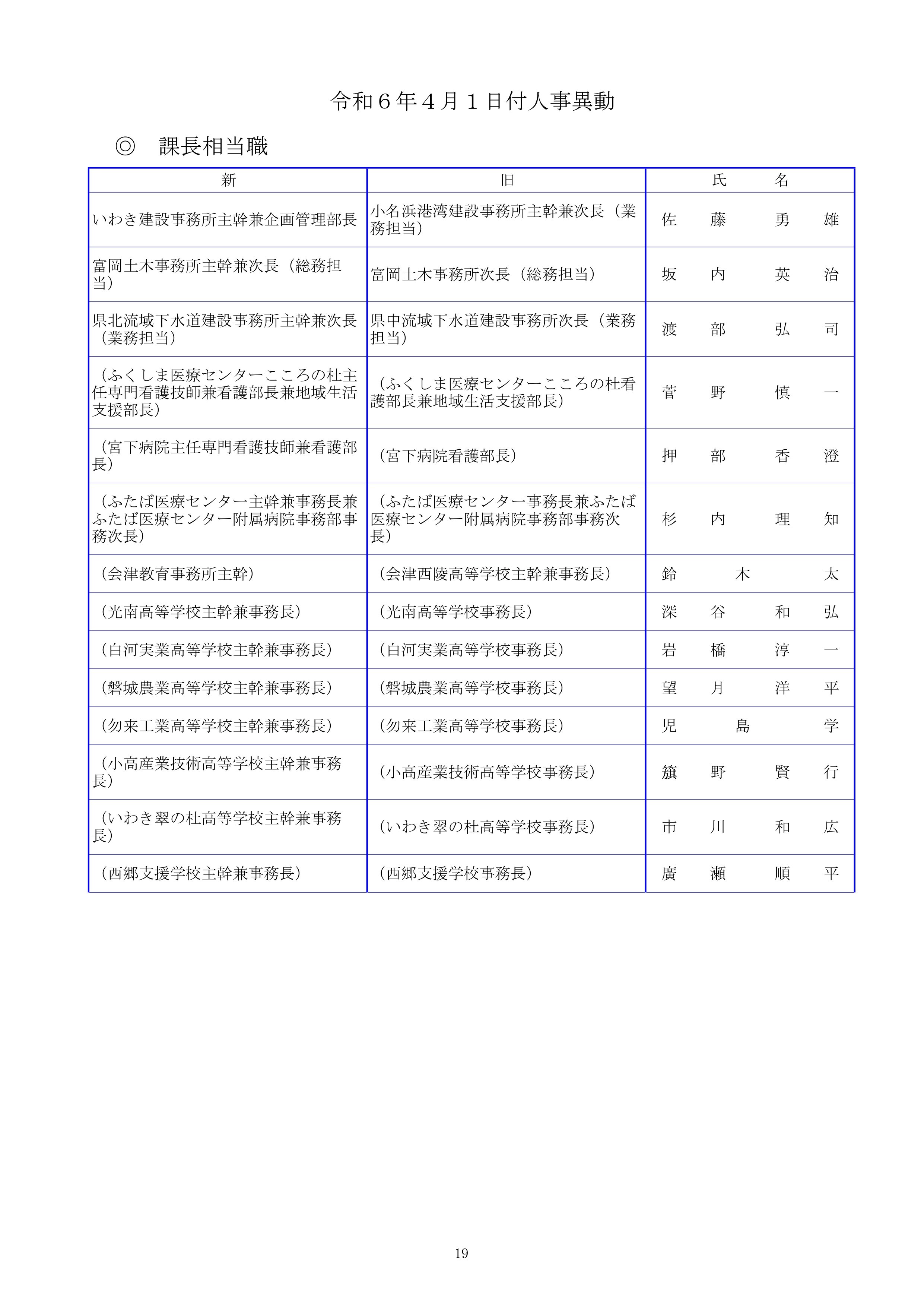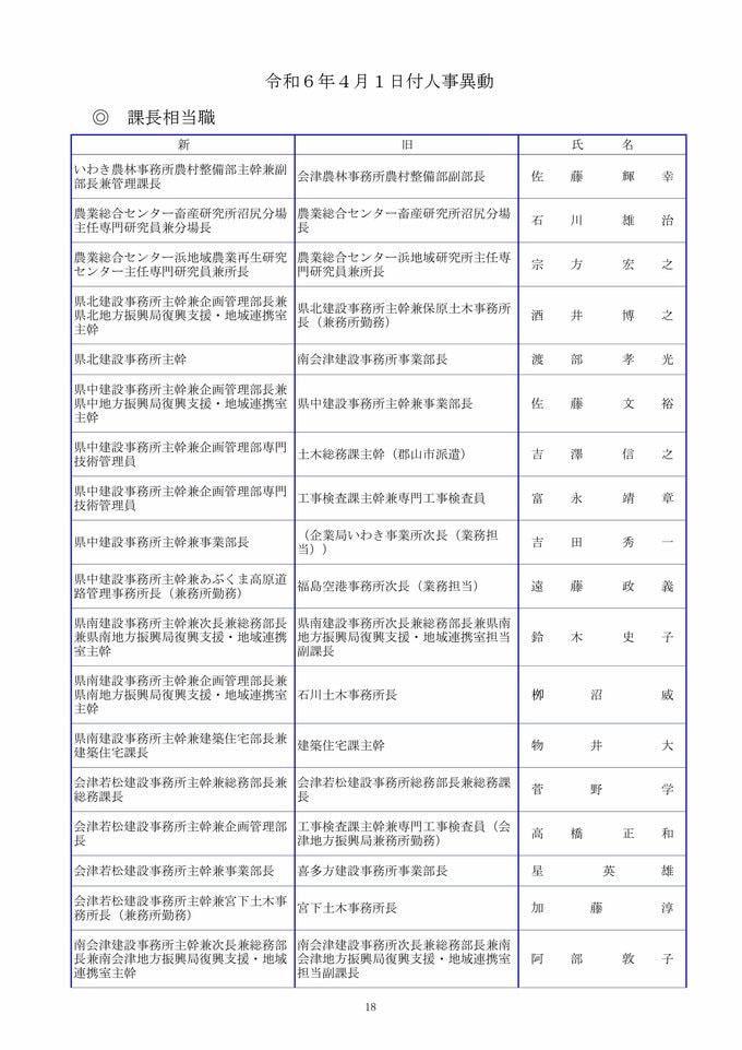 福島県職員人事異動2024年(令和6年春)課長相当職以上の職員の異動・退職者【名簿全掲載】