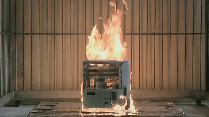 ガソリンを入れた石油ストーブを点火すると、一瞬でストーブが炎に包まれ、燃え上りました。石油ストーブにガソリンを給油すると異常燃焼が起こり、火災を引き起こしてしまいます。