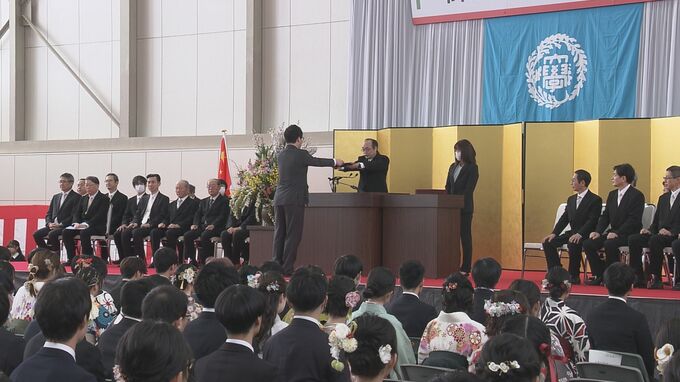 5つの学類の学生と大学院生合わせて1000人あまりの門出を祝った福島大学の卒業式。コロナ禍が明けて、今年は5年ぶりに卒業生全員が集まる通常の形で行われました。式では、三浦浩喜学長が「コロナ禍を乗り越えたみなさんを心から称えたい」と祝福しました。