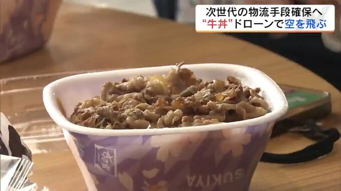 次世代の物流手段を確保しようと、牛丼をドローンで配達する実証実験が福島県で行われました。