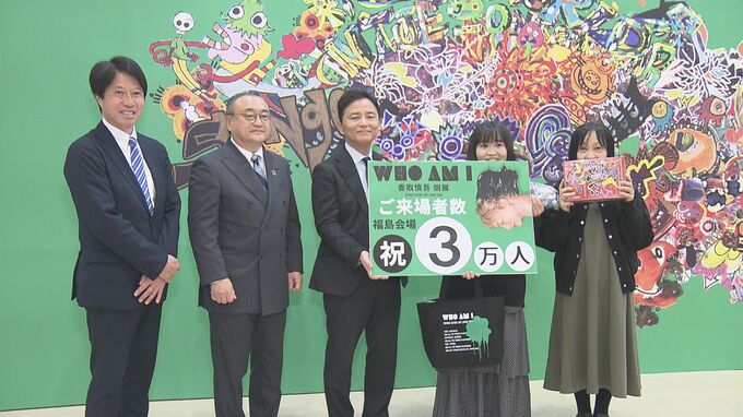 来場者3万人達成!香取慎吾さん個展「WHO AM I」3万人目は東京から来た親子【4月7日(日)まで】 2024年4月4日(木) 16:31 国内 福島市で行われているタレント・香取慎吾さんの個展は、4日、来場者が3万人を突破しました。3月2日に開幕した香取慎吾さんの個展では、およそ200点の作品が展示されています。4日、来場者が3万人を達成し、記念の…