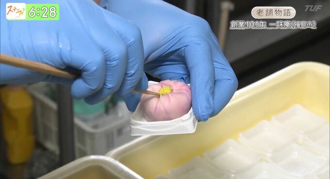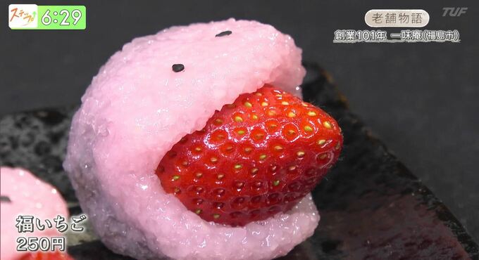 ---氏家一浩さん「『福べえ』っていうキャラクターの名前を付けて、福島市内のイチゴ農家さんから直接イチゴを使ってるんですけど、包むと顔に見えてきたんで、ごまで目をつけてみたら、あっかんべーをしてる、食べて美味しくて見て癒されるような、愛されるお菓子になってきたと思います。」