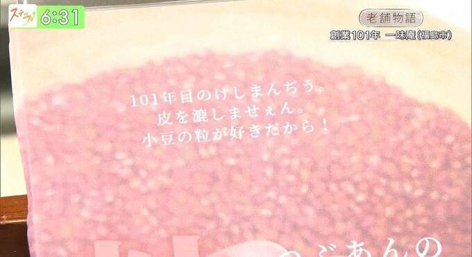つぶ餡独特の食感が楽しめつつ、小豆の皮は口に残らず、すっと消えるように計算されています。これは101年目にふさわしい逸品です。
