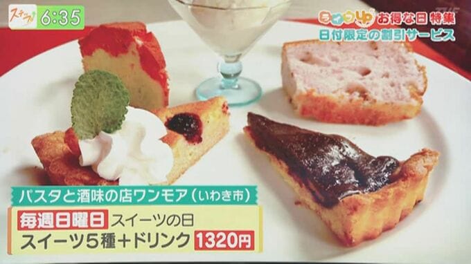 また、毎週日曜日は『スイーツの日』としており、パウンドケーキやブラックチョコバナナタルトなどの手作りスイーツ5種に、ドリンク飲み放題が付いて1320円というお得なイベントも開催しています。スイーツは季節によって変更になるということです。お店の名前の通り、もう1度行きたくなるようなお店ですね。