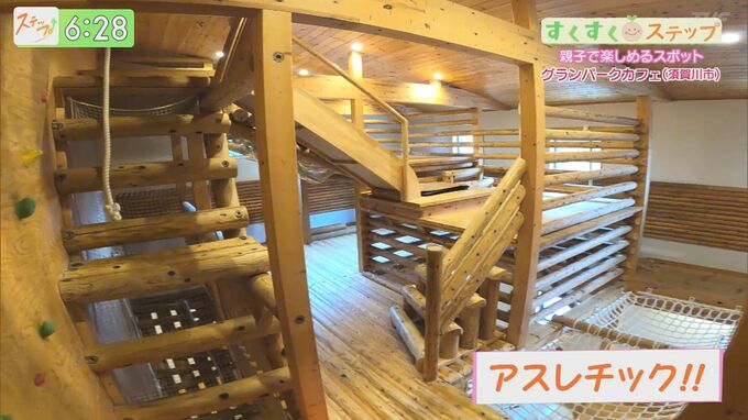 2階に上ってみると、なんとアスレチックが出現!アスレチックコーナーは全て木で出来ていて、子どもが木のぬくもりを感じながら楽しく遊ぶことができるんです。親子で一緒にアスレチックするのも楽しそうですね!