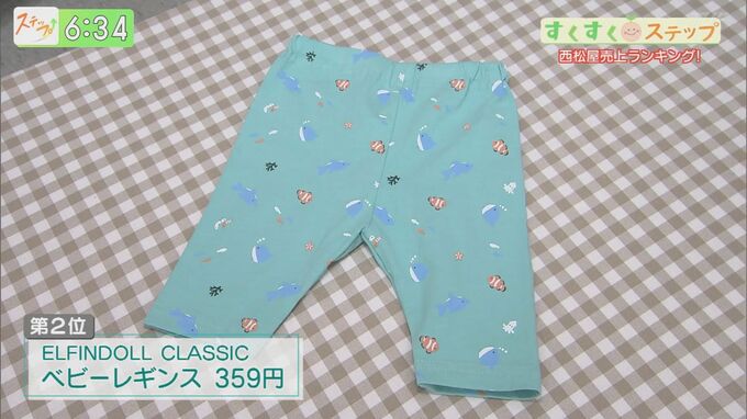 --山田健太 地区長(西松屋ベイシア安達店)「第2位は、『ベビーレギンス』です。暖かくなってくる春から夏にかけて最適なベビーレギンスとなっています。デザインもいろいろあって、トップスとの様々なかわいいコーディネートが楽しめます。」